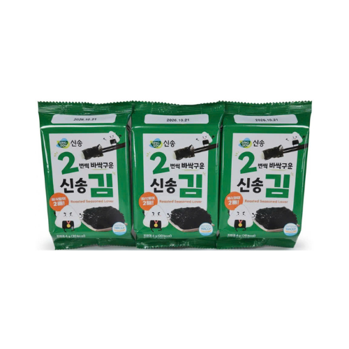 Rong biển ăn liền Singsong Shinsong Gim là sản phẩm rong biển Hàn Quốc được rang giòn và tẩm gia vị nhẹ, mang hương vị thơm ngon đặc trưng. Rong biển được đóng gói thành từng gói nhỏ tiện lợi, thích hợp dùng ăn trực tiếp, ăn kèm cơm nóng, cháo hoặc làm món ăn vặt dinh dưỡng.